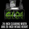 - 24-inch clearing width and 20-inch intake height to churn through the worst that winter can unleash
