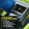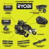 - LCD screen and control panel to monitor runtime, battery life, cut speed, drive speed, on/off headlights and pair with the RYOBI riding mower app via bluetooth