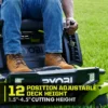 - 12 position manual deck adjustment with 1.5 in. to 4.5 in. adjustable cutting height